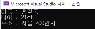 printf("주소 : 서울 200번지\n");