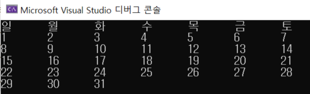 printf("일\t월\t화\t수\t목\t금\t토\n");