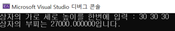 printf("상자의 가로 세로 높이를 한번에 입력 : ");