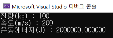 E = (m * v * v) / 2.0; //또는 E = 0.5 * m * v * v;