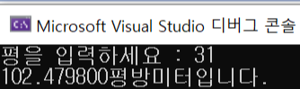 05. 우리나라에서 많이 사용되는 면적의 단위인 평을 제곱미터로 환산하는 프로그램을 작성하시오. 여기서 1평은 3.3m^2이다. 변수들의 자료형은 어떤 것을 선택하는 것이 좋은가? 기호 상수를 이용하여 1평당 제곱미터를 나타내어라.
